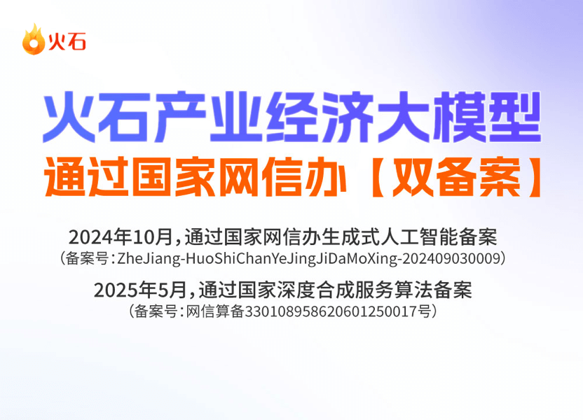 火石产业经济大模型通过国家网信办“生成式人工智能”和“深度合成服务算法”双备案